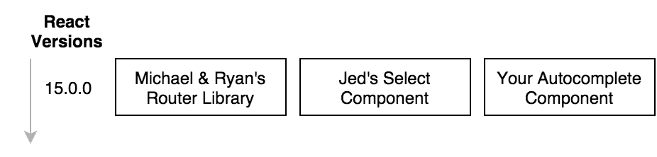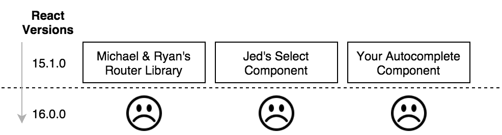 If you try to upgrade your component to 16.0.0 you might find that your application no longer works if you still have other dependencies. E.g. if Ryan’s and Jed’s components are only compatible with 15.x.x.